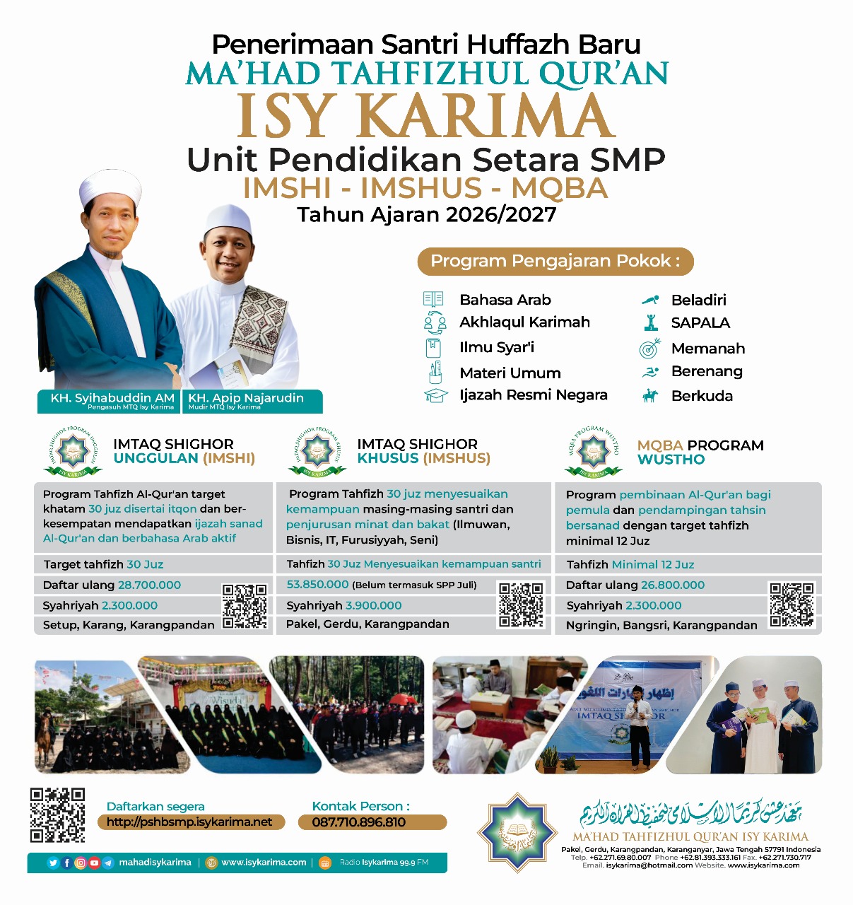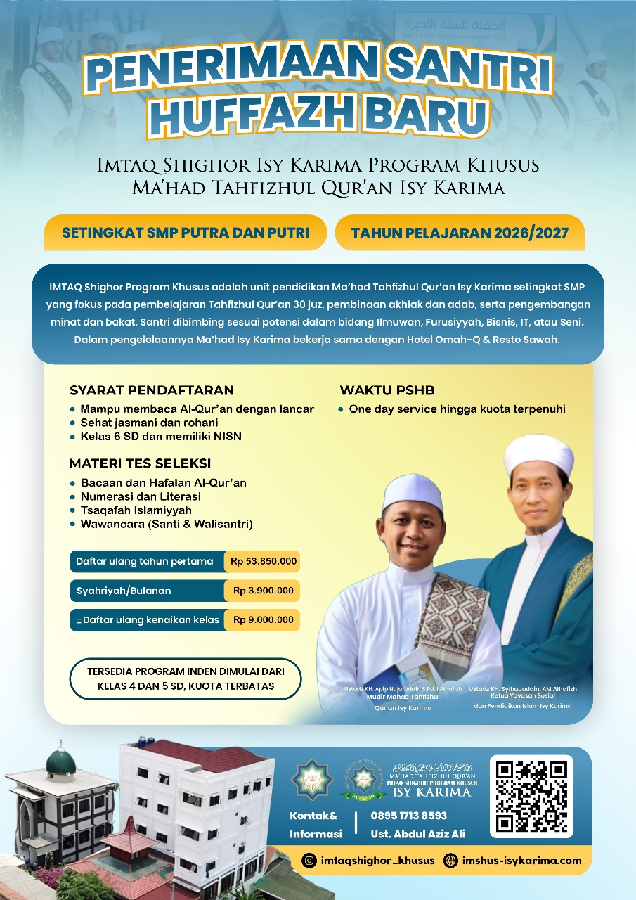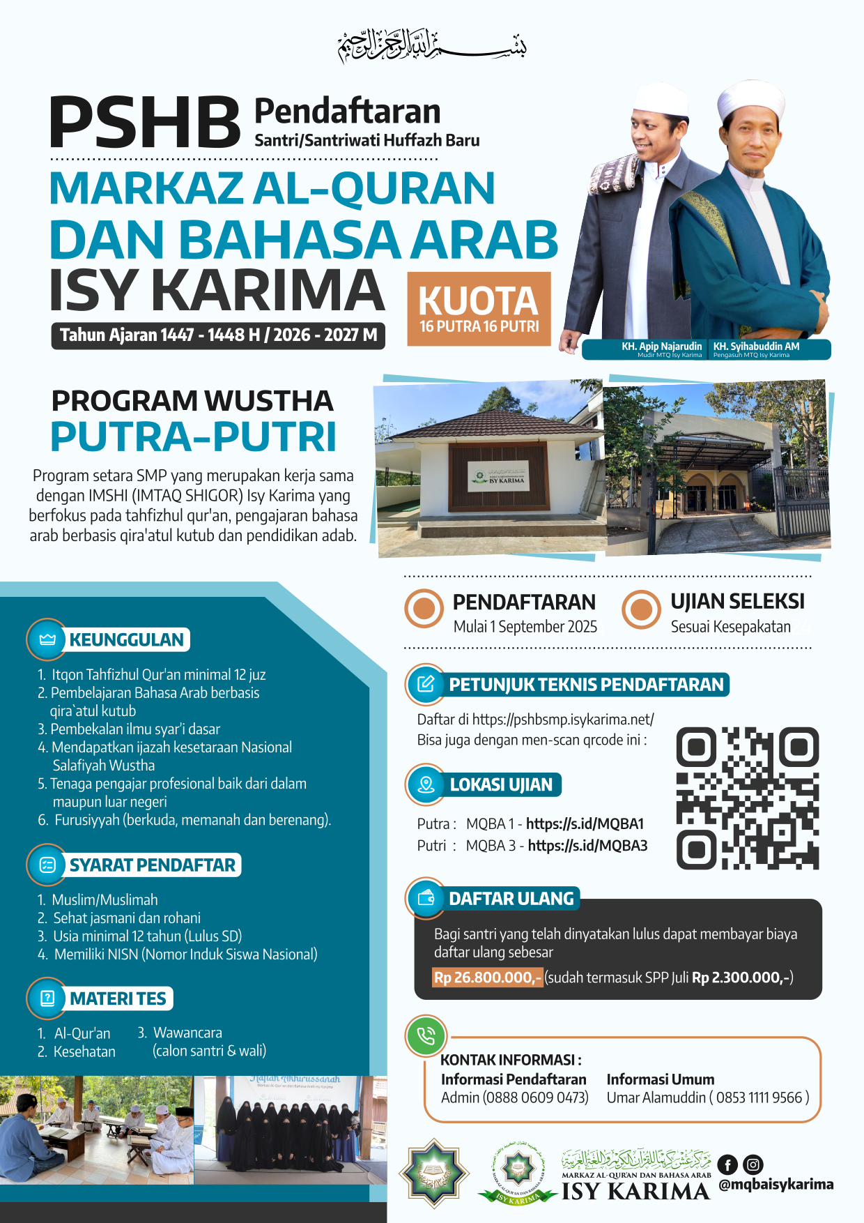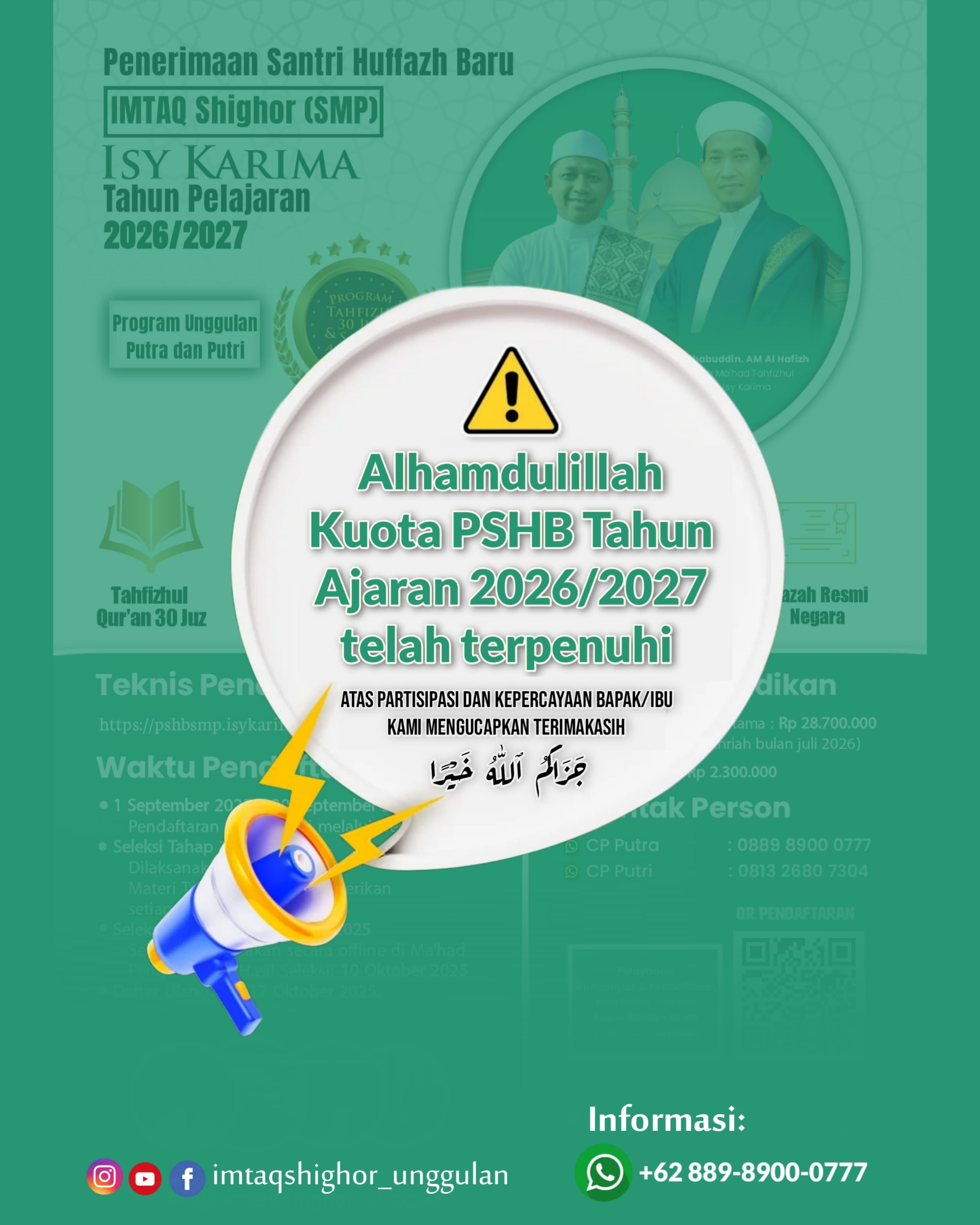 - Daftar Ulang IMSHUS dan WUSTHA : 1 Minggu setelah pengumuman diterima.